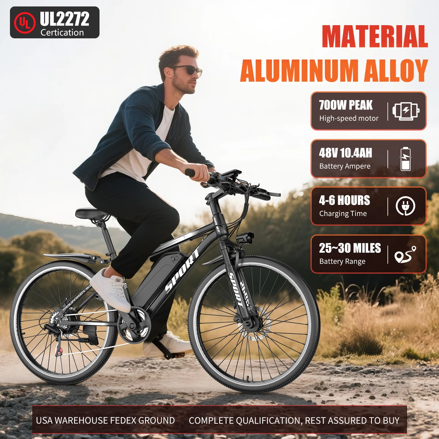 26''Electric Bike, Motorcycle 750W Peak Motor, 22MPH 35Miles Electric Mountain Bike, 480Wh Removable Battery, 7-Speed& LCD Display