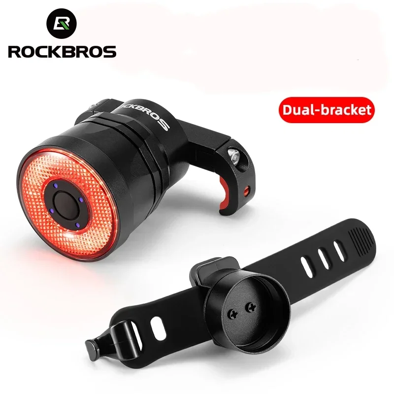 ROCKBROS Bicycle Rear Light Bike Smart Brake Sensing Taillight Type-C Charging Day/Night Sensing MTB Road Bike Accessories