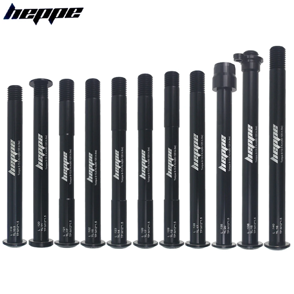 HEPPE MTB Road Bike Thru Axle Front Fork Shaft Skewers Rear Hub Thru Axle 12x142/148 12x100/110 Bike Barrel Axle M12xP1.0/1.5