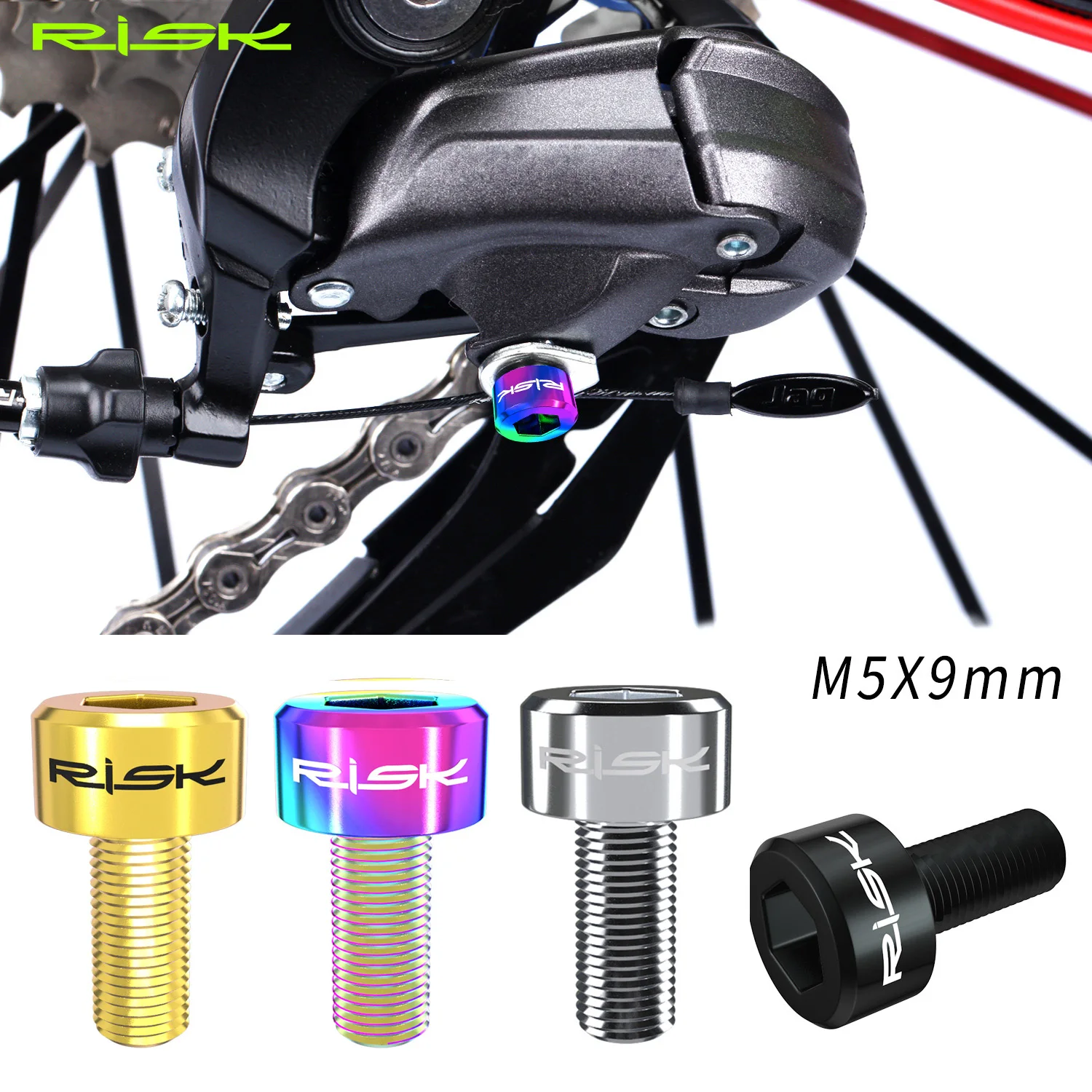 RISK 2PCS M5 x 9mm Titanium Alloy Bolts for Bicycle Front Rear Derailleur Wire Fixing MTB Mountain Road Bike Shift Cable Screws