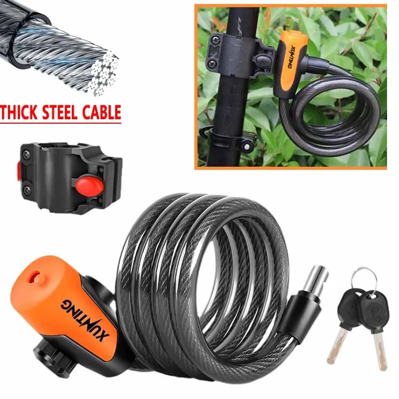 100cm Bicycle Lock Anti-theft Mountain Road Bicycle Wire Chain Lock Key Safety Anti-theft Belt Mounting Bracket Bicycle Lock