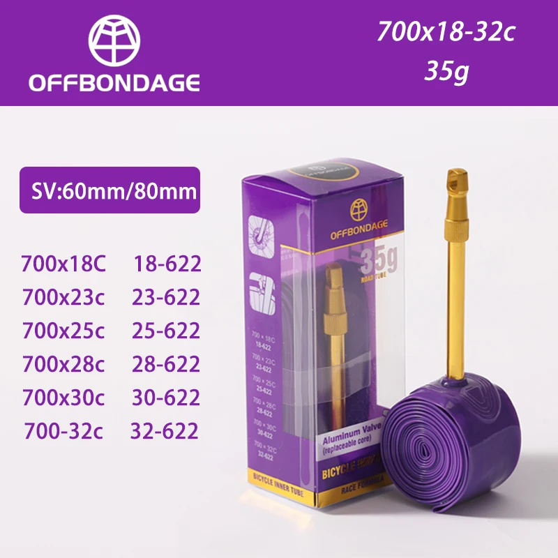 OFFBONDAGE Aluminum Valve Ultralight Bike Inner Tube 700C Road Bicycle TPU Tire 60 80mm Length French Valve Super Light Tube