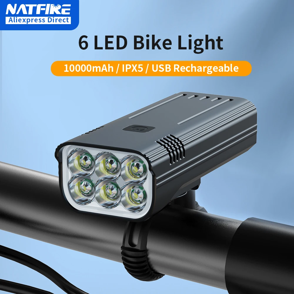 NATFIRE 6LED 10000 mAh Bike Light Rainproof USB Rechargeable LED Bicycle Light Super Bright Flashlight for Cycling Front Light