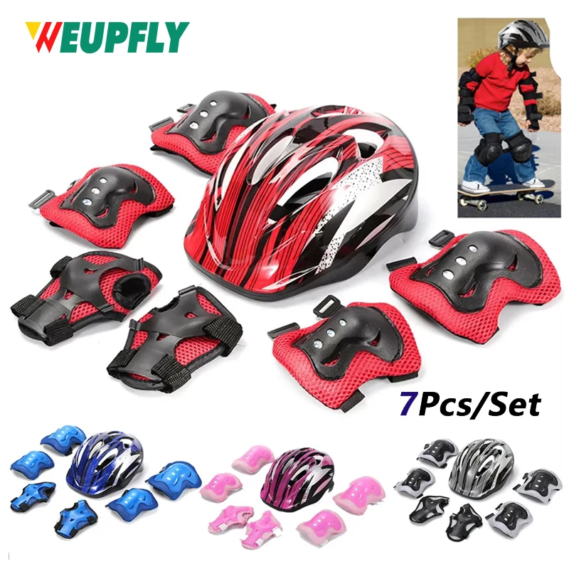 7Pcs/Set Kids Bike Helmet Pad Set Elbow Knee Wrist Pads Protective Gear Set for Skateboard, Cycling, Wrist Guards Toddler  Read more