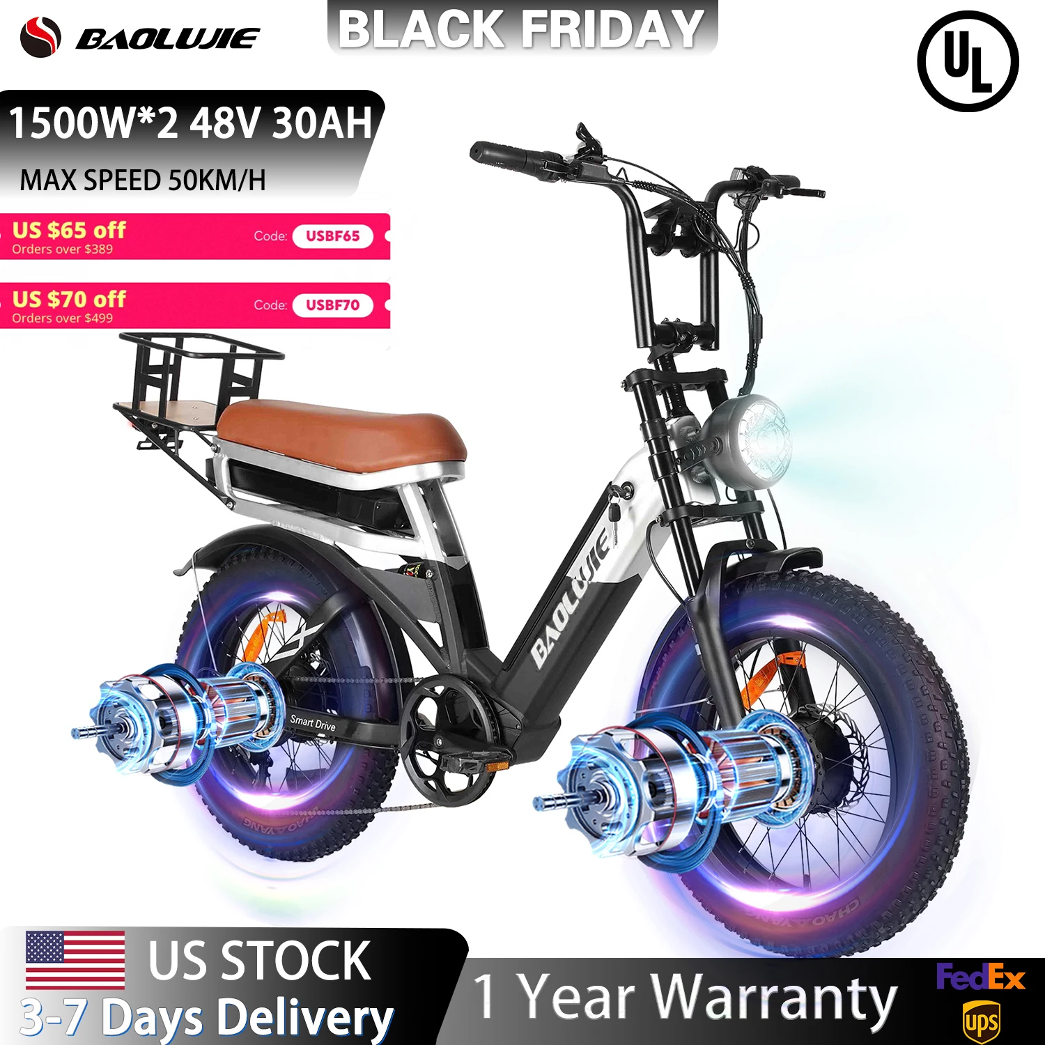 【1 Year Warranty】BAOLUJIE 2033 Dual Motor Ebike 2000W Electric Bike for Adults Full Suspension Battery Electric Bicycle 7 Speed  Read more