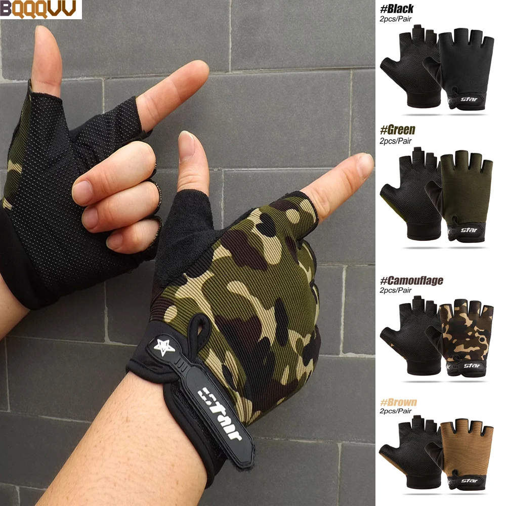 1Pair Camouflage Half Finger Gloves for Men & Women Breathable Sports Gloves Antiskid for Cycling Bike Gym Fitness