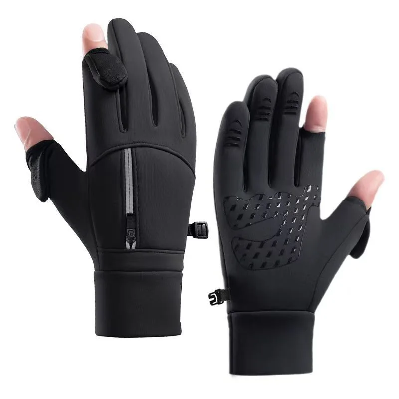 Winter Cycling Gloves Windproof Men Women Touchscreen Warm Gloves Motorcycle Water-Repellent Zipper Pocket Fingertip Flip Gloves