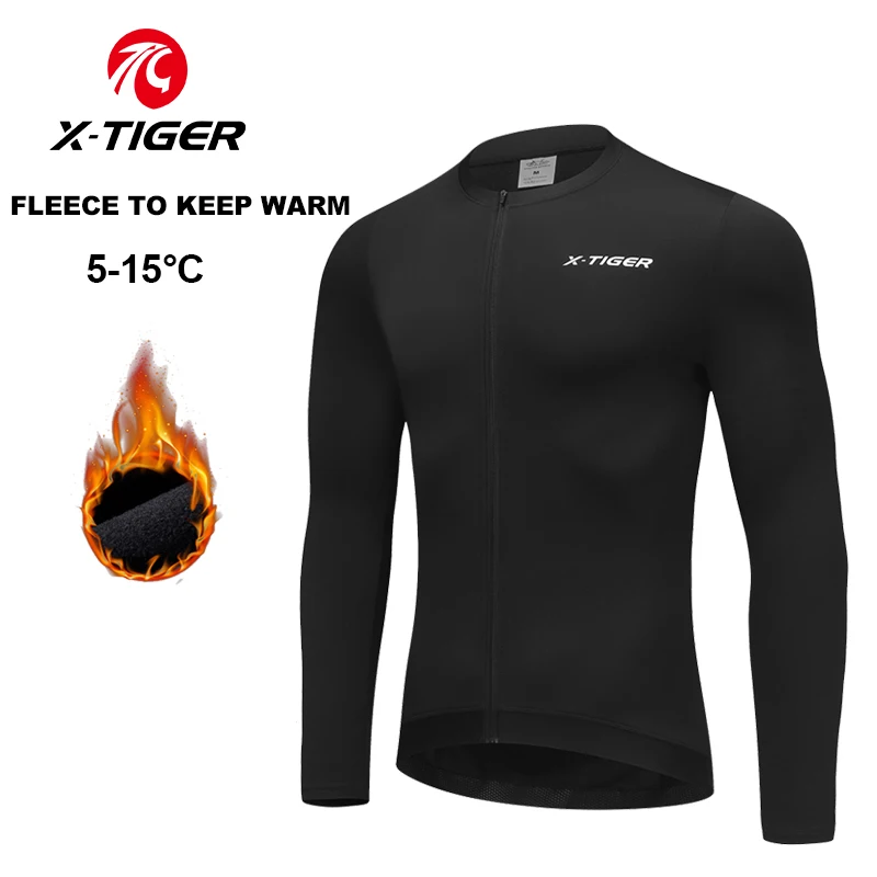 X-TIGER Men's Winter Cycling Jacket Warm Fleece MTB Mountain Bike Shirt Ciclismo Long Sleeve Cycling Jersey