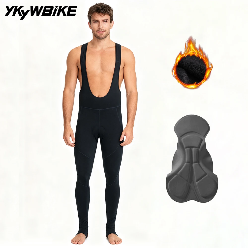 YKYWBIKE Winter Cycling Long Bib Pants Tights 5-15°C Thermal Fleece Men MTB Downhill Bike Mountain Bicycle Cycling Long Pants