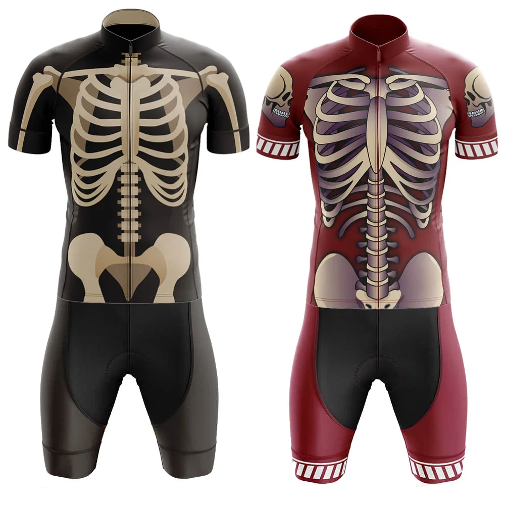 Retro Skeleton 2024 Cycling Jersey Set Men Popular Skull Cycling Red Clothing Road Bike Shirts Suit Bicycle bib Shorts MTB Ropa