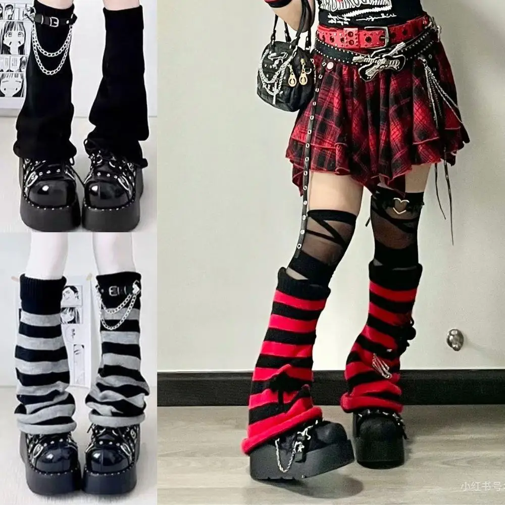 Gothic Women's Striped Leg Warmers Black White Lolita Long Socks Knitted Japanese Winter Socks Arm Ankle Warmers Wide Legs Cover