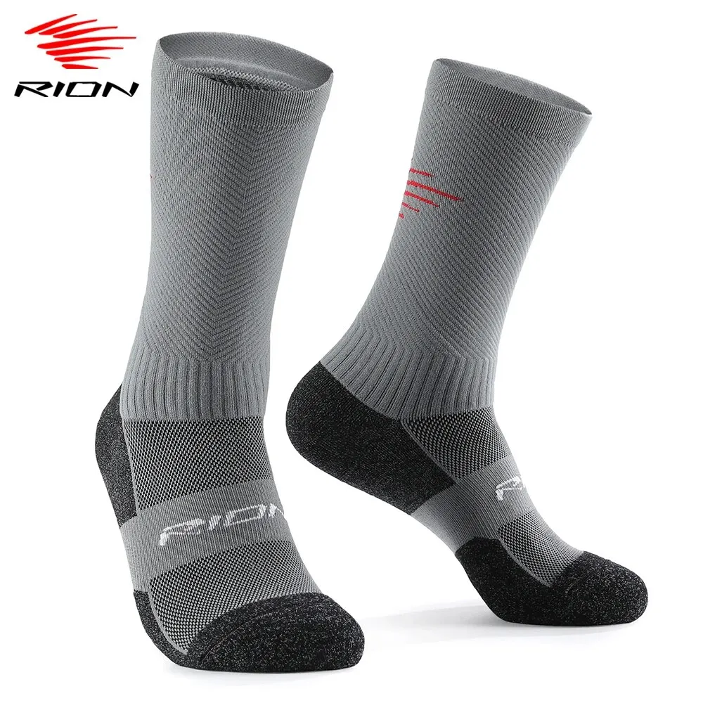 RION Men Cycling Socks MTB Bicycle Mountain Bike Mid Calf Sock Hiking Running Basketball Foot Wear Moisture Wicking Terry