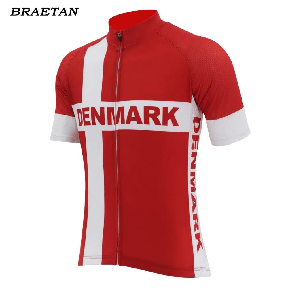 Denmark Cycling Jersey Short Sleeve Summer Red White Clothing Cycling Wear Racing Clothing Bicycle Clothes Braetan