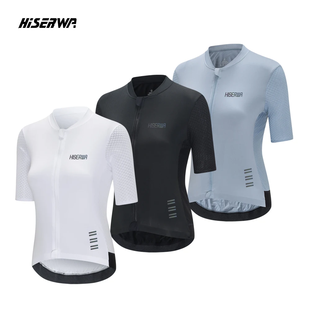 HISERWA Summer Women Cycling Jersey High Quality MTB Road Bike Clothing Short Sleeve Breathable Cycling Shirt Bicycle Jersey
