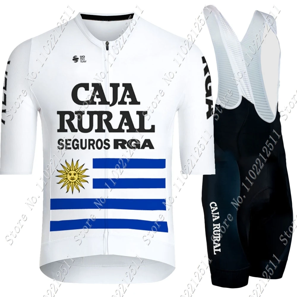 Uruguay Team 2025 Caja Rural Cycling Jersey Set Short Sleeve Cycling Clothing Road Bike Shirts Suit Bicycle Bib Shorts MTB Wear