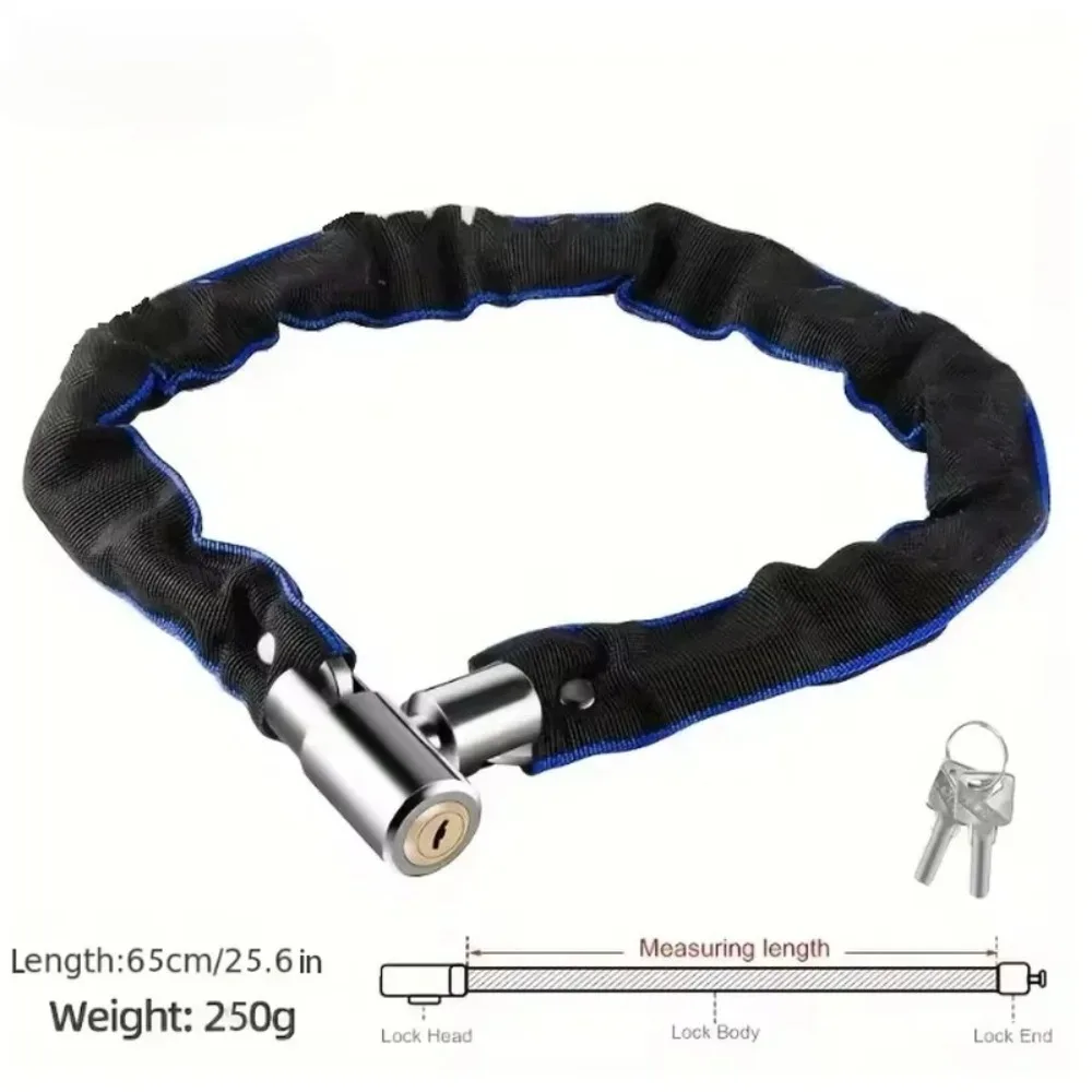 1Pc Premium Black Bike Lock with Manganese Steel Chain Heavy Duty for Mountain Bikes Cycling