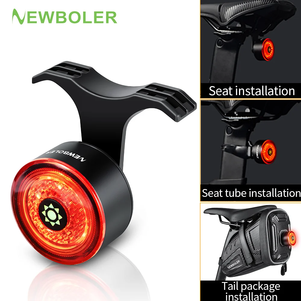 NEWBOLER Smart Brake Bicycle Tail Light MTB Road Seatpost Saddle Bike Rear Light Waterproof USB Charging Cycling Taillight