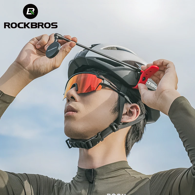 ROCKBROS Bicycle Helmet Rearview Mirror Adjustable Extension Rearview Mirror Aluminum Safety Riding Mirror 360 Degree Rotation