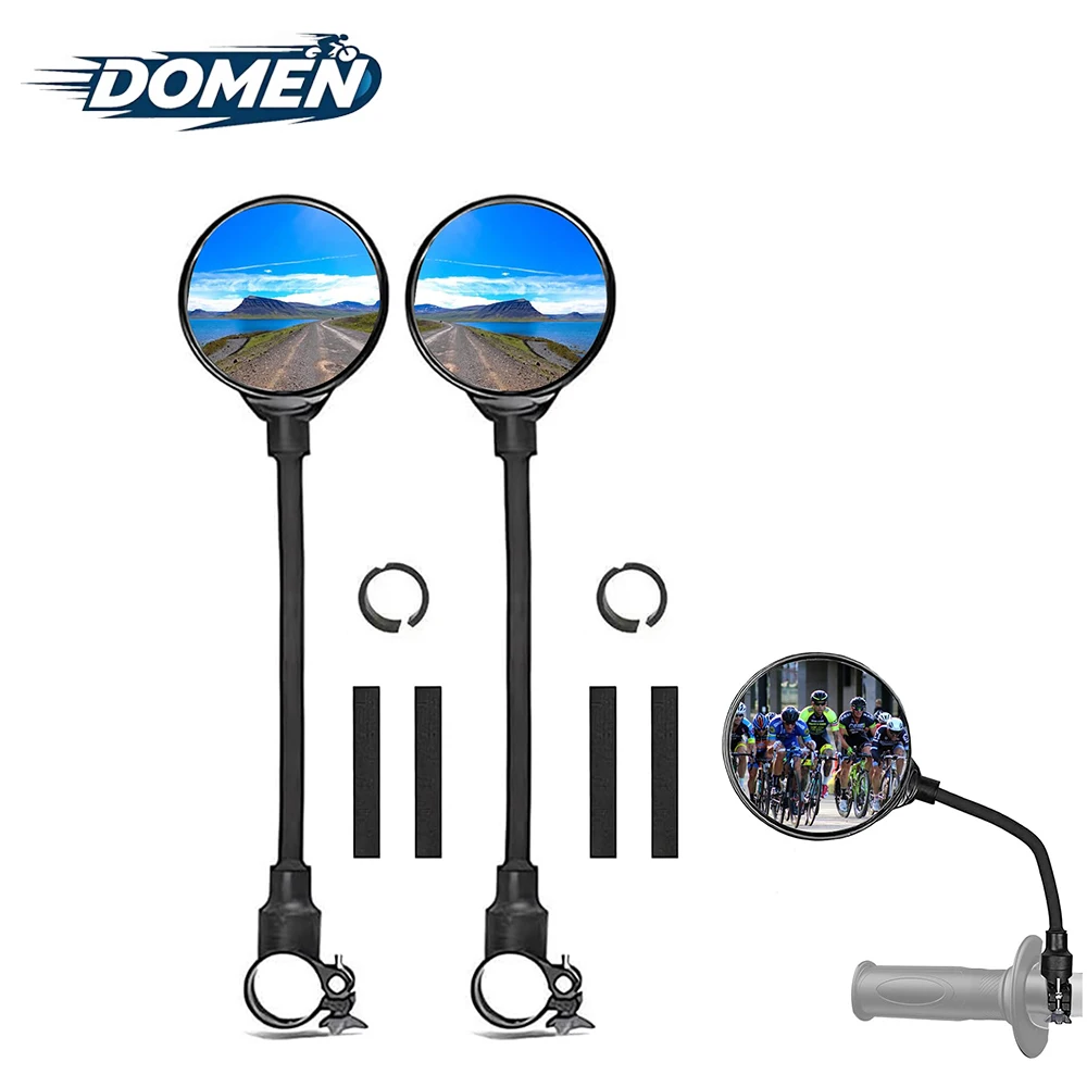 DOMEN Bike Mirror Bike Handlebar Rearview Mirror 360 Rotatable And Bendable Hose Adjustable Wide Angle Rear View Mirror