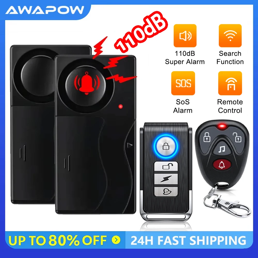 Awapow Wireless Vibration Bike Alarm With Remote Control Anti-Theft Door And Window Alarm 110dB Loud Home Bicycle Security