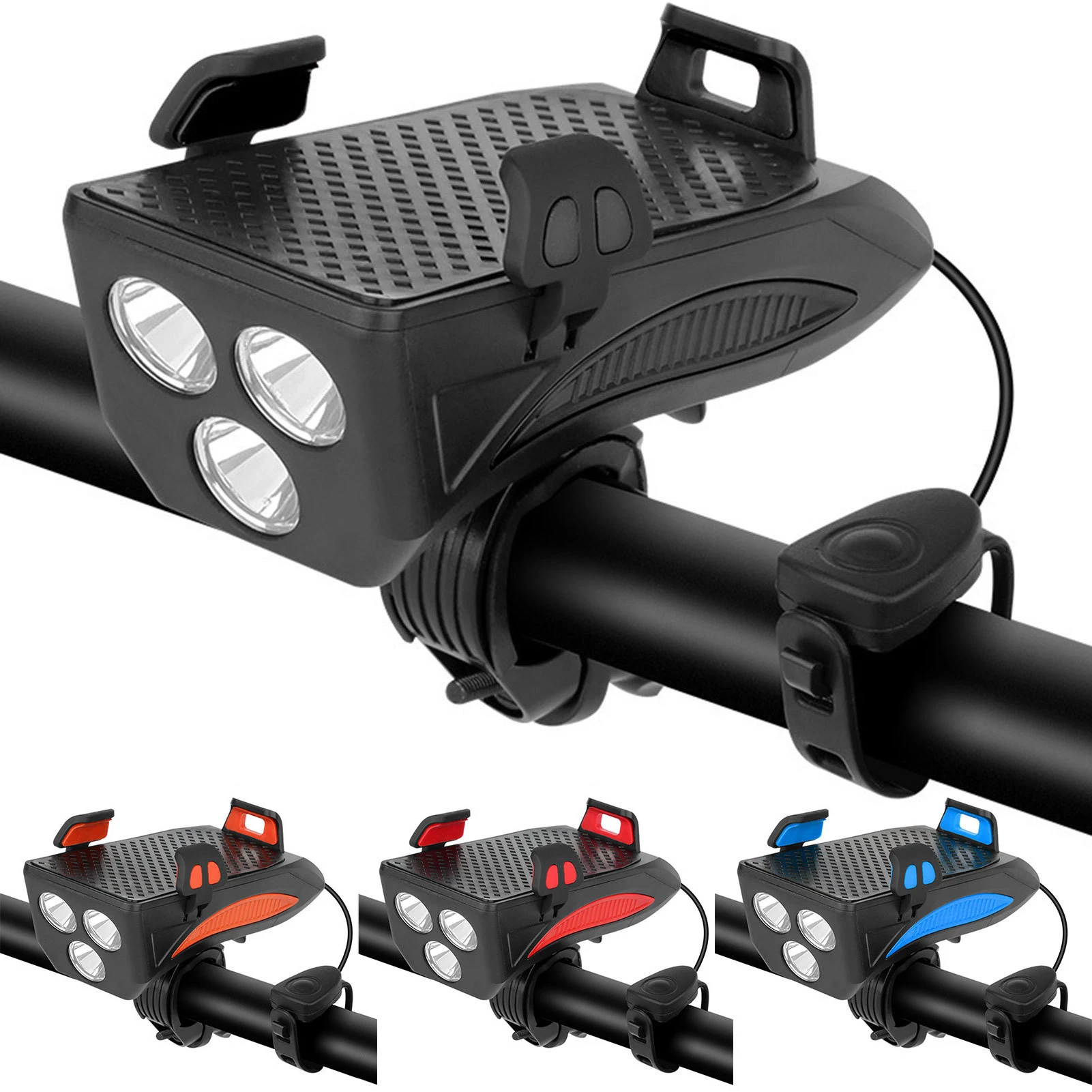 4 in 1 Bike Phone Holder Headlight Front Light Power Bank Cycling Bracket Bicycle Horn Waterproof Rechargeable