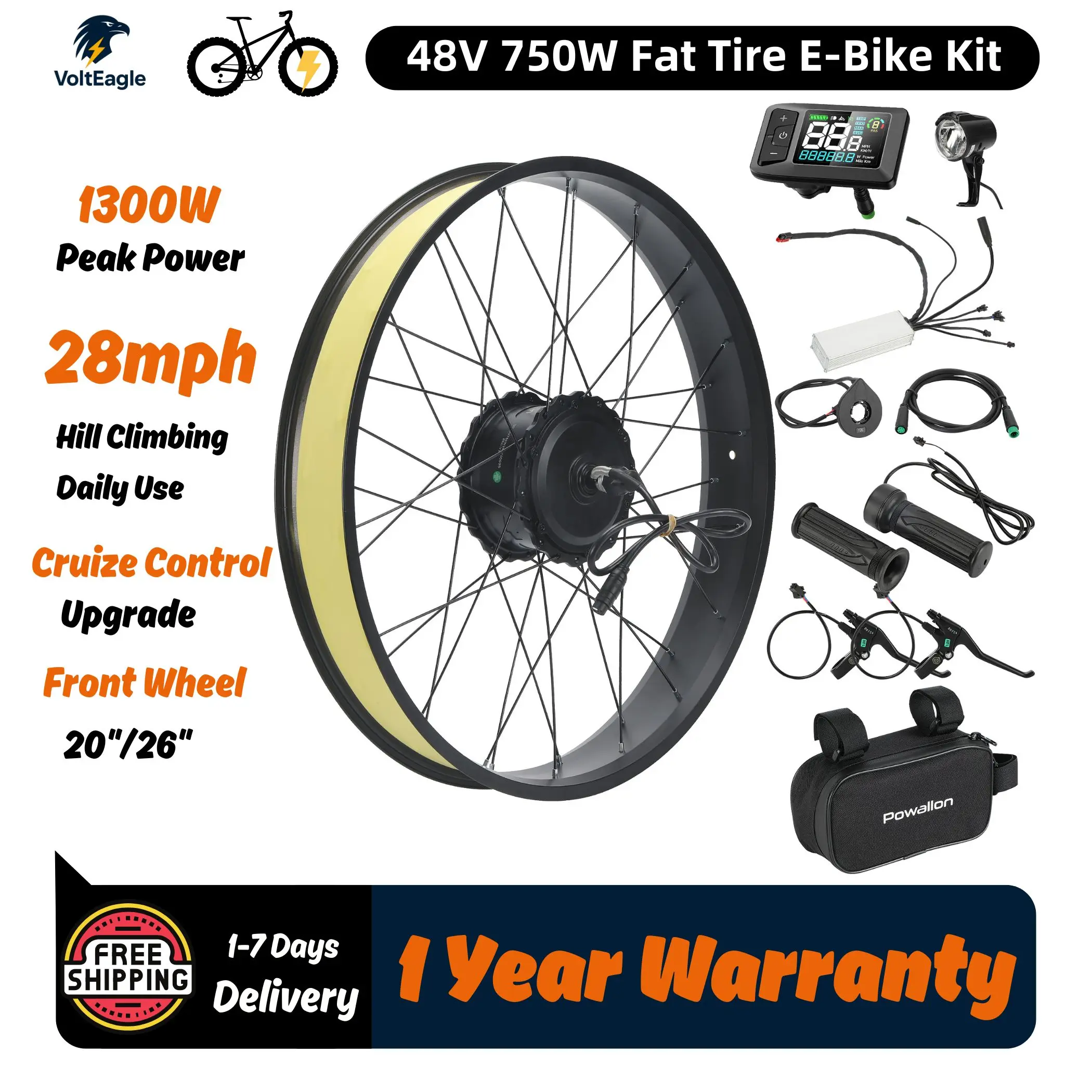 Fat Tire Ebike Conversion Kit, 750W Front Hub Motor Kit for Electric Bicycle, 80N.m Torque, 28mph Top Speed, 20" 26" Optional