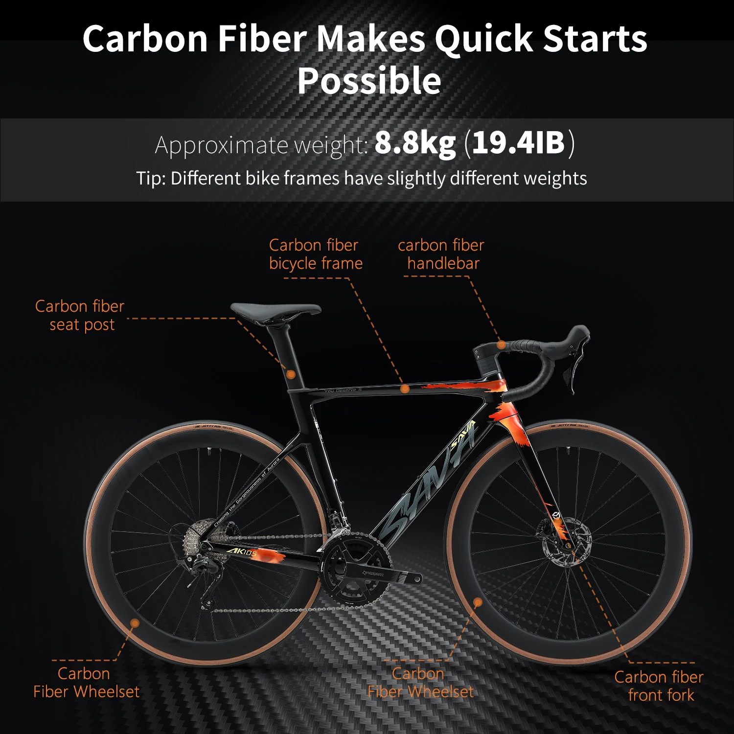 SAVA NEW STAR SHIP Carbon Road Bike, Adult Racing Bike, Equipped With Shimano 105 R7100, 24-Speed Hydraulic oil Brakes