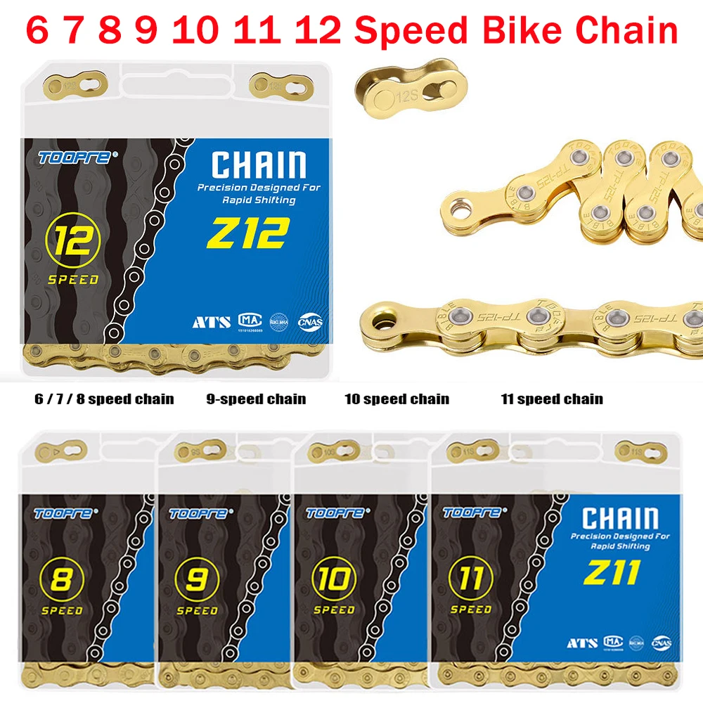TOOPRE Bicycle Chain 6 7 8/9/10/11/12 Speed Variable Mountain Road Bike Anti-rust Electroplated Gold Chains Cycling Accessories