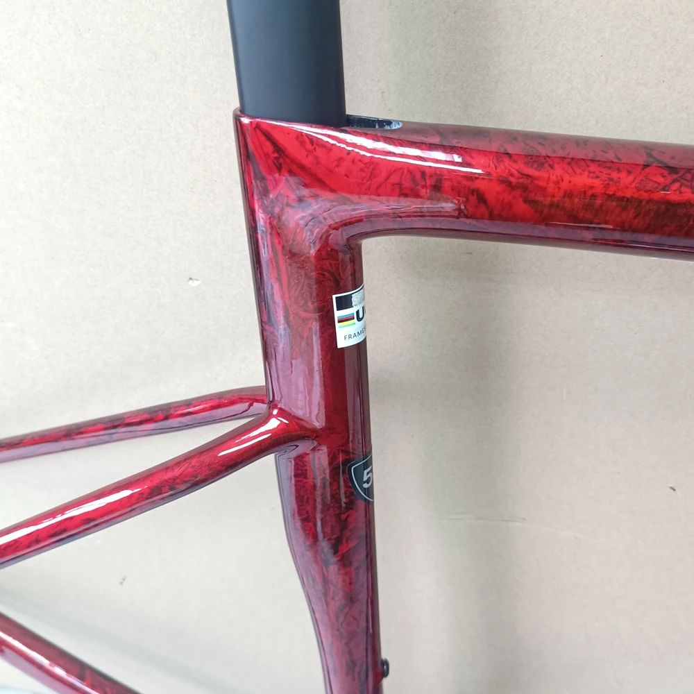 Road Bicycle Carbon Frame with Handlebar, Disc Brake, Champion Team Color, Avaliable Size, 48 cm, 51 cm, 54 cm, 56 cm, 58cm
