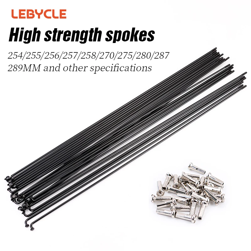 LEBYCLE Bicycle Spokes Wire Mountain Road Bike 304 Stainless Steel Spokes 14G black High-Strength Bicycle Spokes 29 Spoke Cap