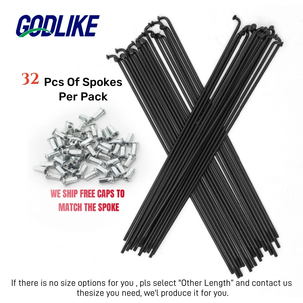 32Pcs High-end Quality 14G J Bend Bicycle Steel Spokes 135-305mm Length With Nipples Straight Head Bike Replacement Parts Black  Read more