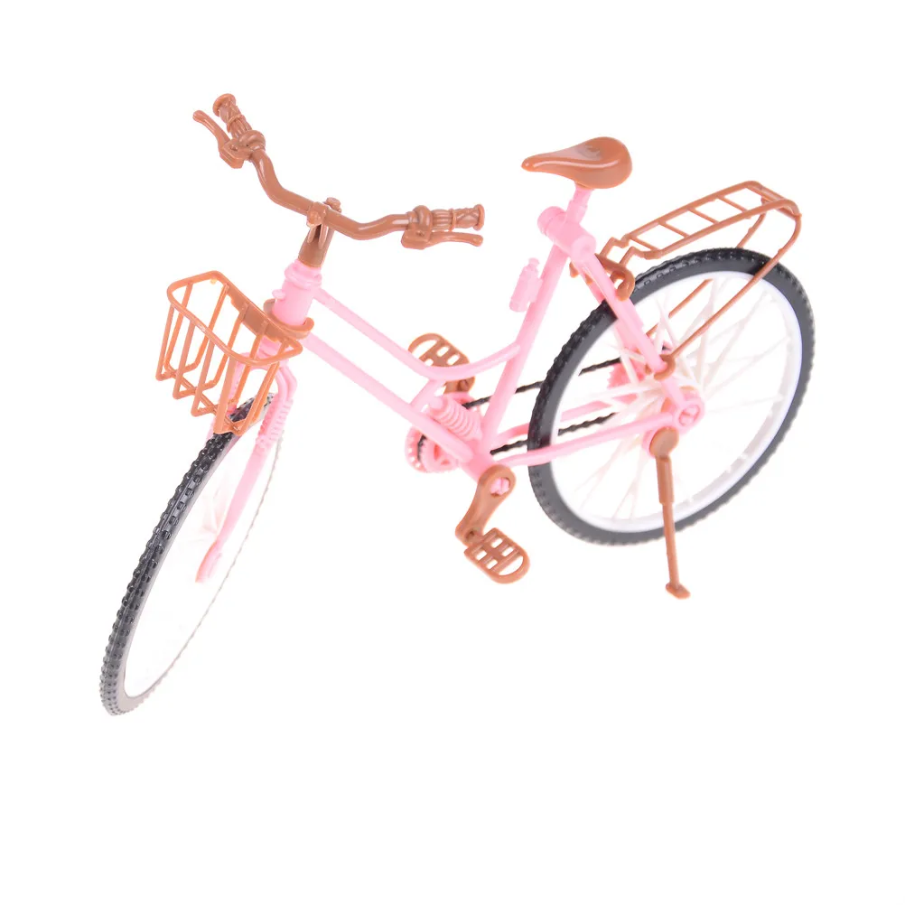 1pc Fashion Beautiful Bicycle Fashion Detachable Pink Bike with Brown Plastic Basket for Kids Dolls Accessories Size: 26*8*17