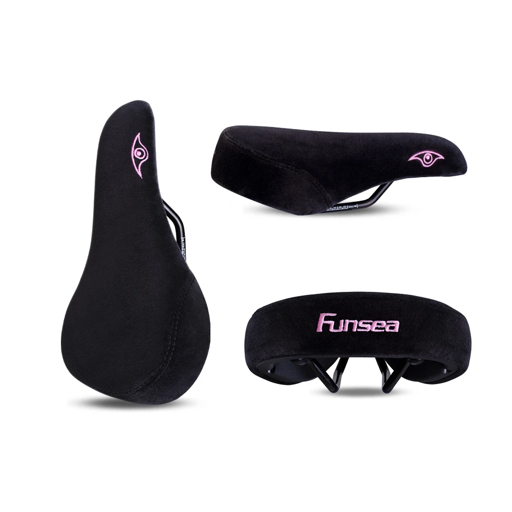 Funsea Bicycle Accessories Wheelie Stunt Bike Seat for Girl Female Cycling Flannelette Surface 8mm Rail Embroidery Pink Logo