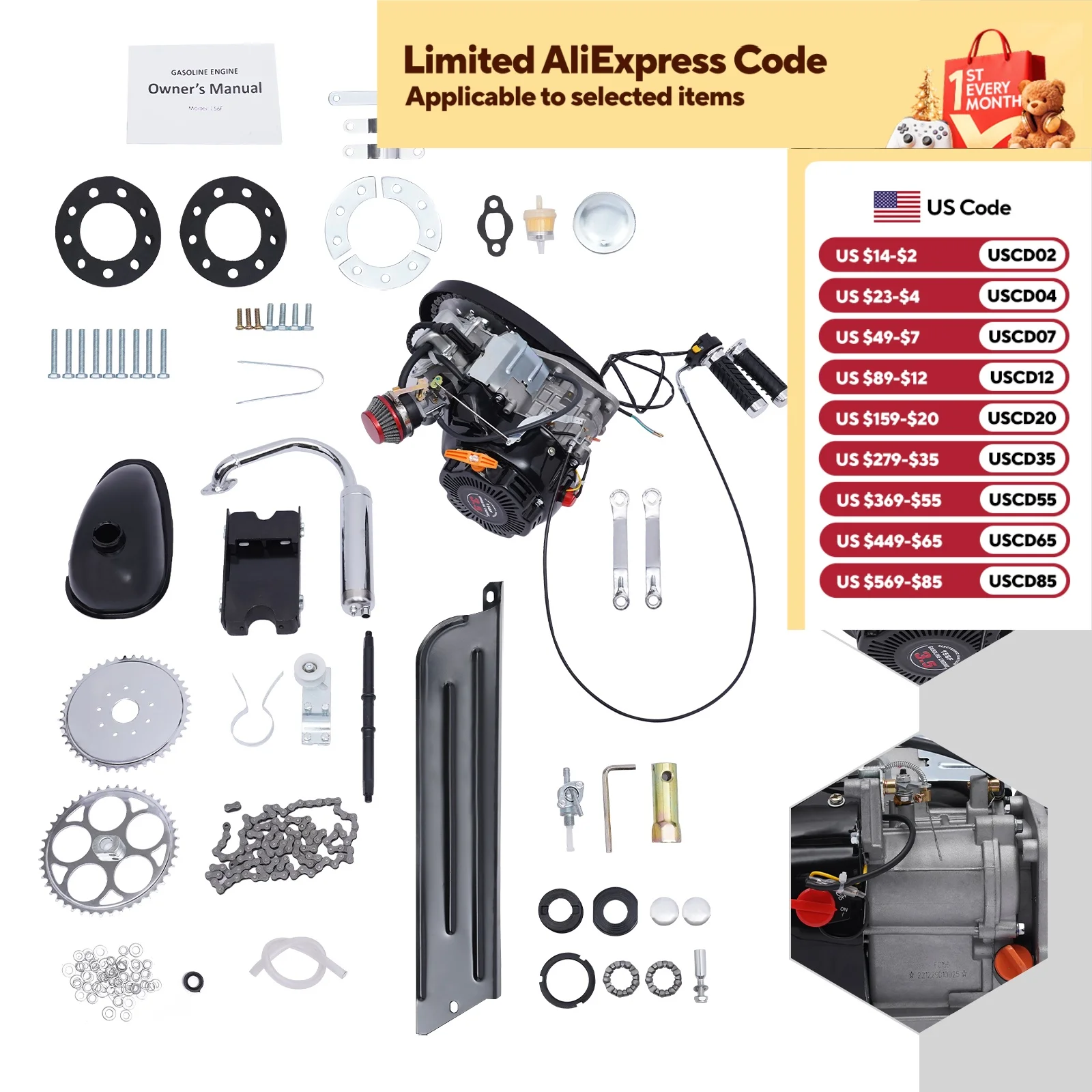 100cc 4 stroke 3HP Bicycle Engine Kit Set Gas Motorized Motor Bike Modified Engine EZ-156F Recoil Start  Read more