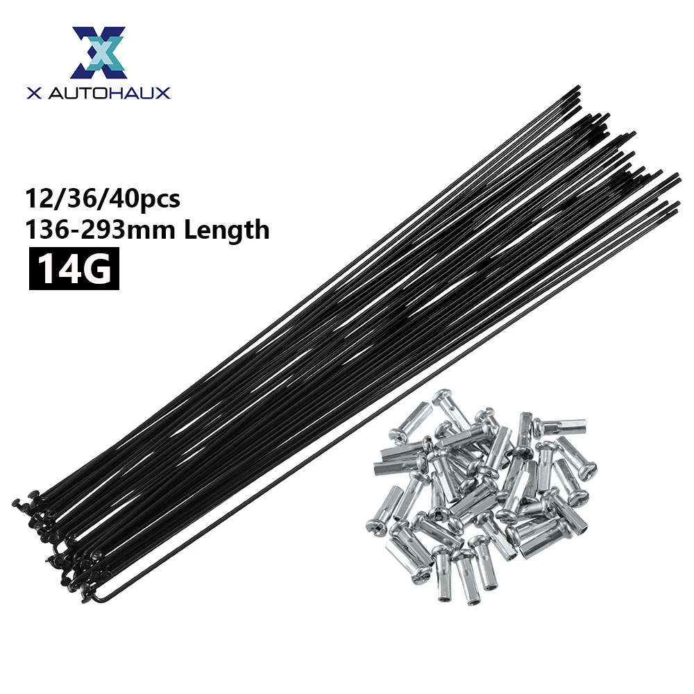 X Autohaux 14G J Bend Bicycle Steel Spokes 136-293mm Length with Nipples Straight Head Bike Replacement Parts Black