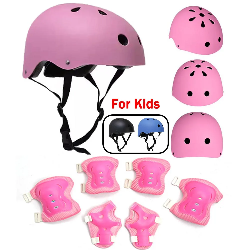 7Pcs Helmet Knee Elbow Protective Gear Set Adjustable Kids Bicycle Sport Protective Gear Set 48-55cm for Boys Girls 5-12 Years
