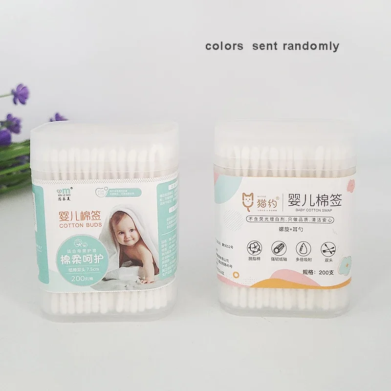 200pcs Multifunctional Cleaning Stick Baby Cotton Swabs Double-ended Sterile Cotton Swabs Spiral Head Ear and Nose