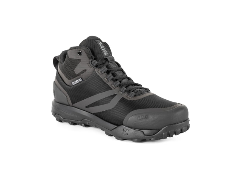 5.11 Tactical A/T Mid Waterproof Boots - Men's Black Wide 13 US 12446-019-13-W. The A/T Mid Waterproof has a 3D molded rubber toe and Tac Dry + BBP to keep your feet protected and dry. The slip- and oil-resistant outsole gives you a safe and stable...