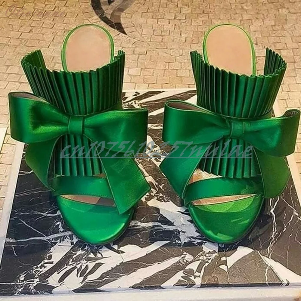 Green Front Butterfly Knot Decor Slippers Open Toe Stiletto High Heel Retro Style Party Elegant Women Shoes 2025 New Para Mujere