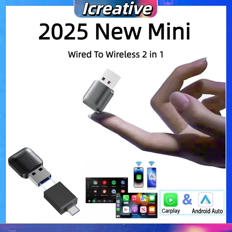 Mini Adapter Wireless for Apple CarPlay Android Auto 2in1 Smart Dongle for OEM CarPlay Wired To Wireless Smart Box USB & Type-C