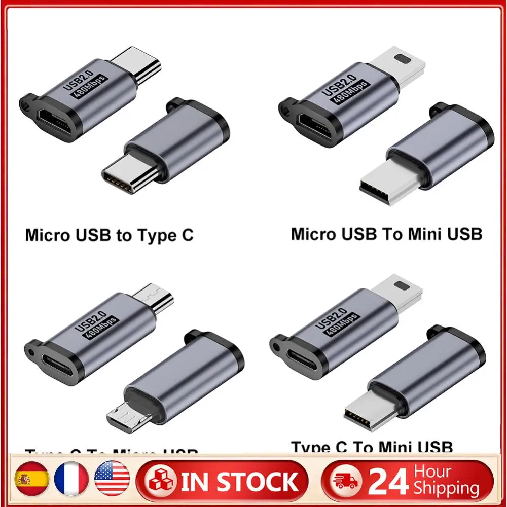 2Pcs Micro USB Female To Mini USB Male Adapter 480Mbps Type C Female To Micro USB Male Converter 18W 5V 2A for Phone/Tablet/PC  Read more