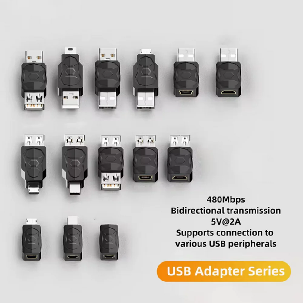 2Pcs Micro USB Female To Mini USB Male Adapter 480Mbps Type C Female To Micro USB Male Converter 18W 5V 2A for Phone/Tablet/PC
