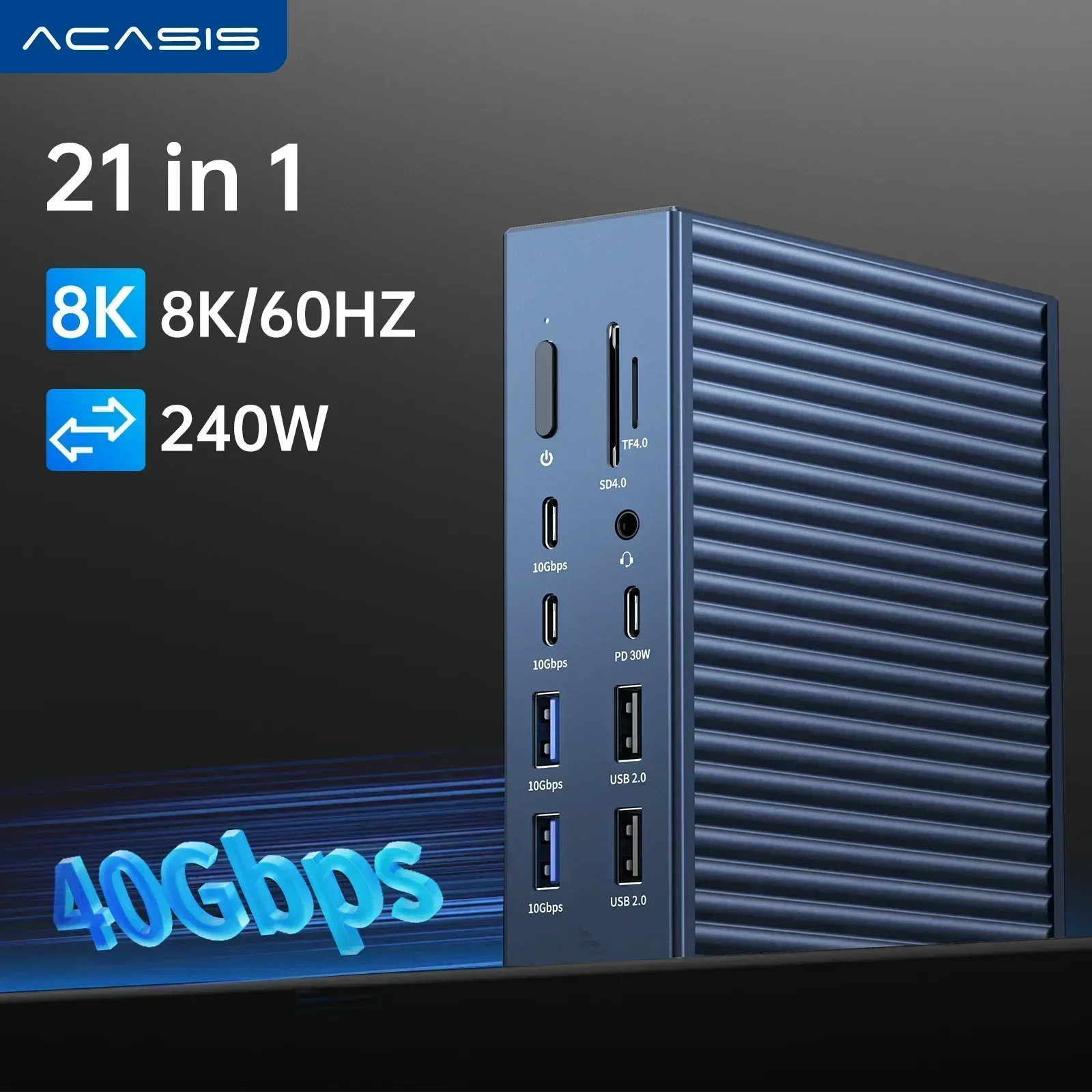 Acasis 40Gbps 21-in-1 Docking Station| Max 90W Output 8K 60HZ TF SD 4.0 |USB-C Hub for Video Editing & Pro Workstation