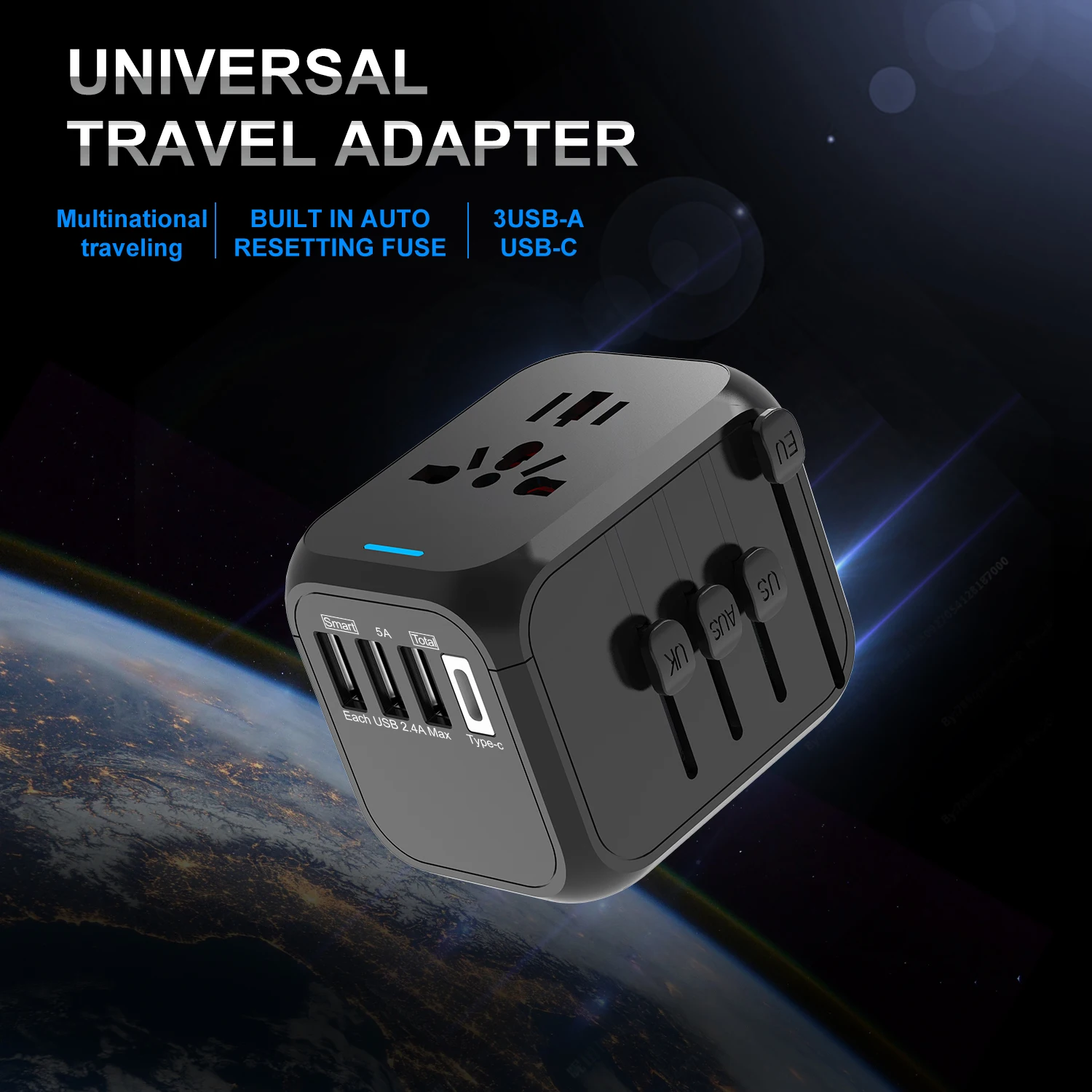 Universal Travel Adapter 3 USB 1 Type-C Port Fast Charging International Plug Adapter For EU UK US Australia Power Charger