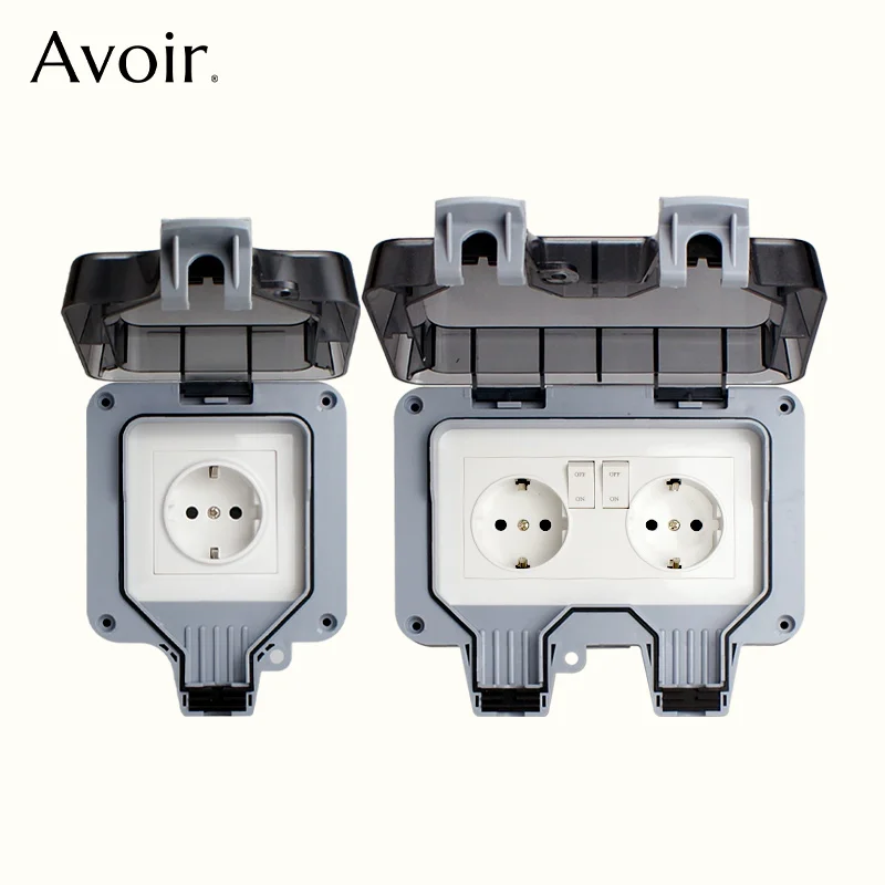 Avoir IP66 Outdoor Waterproof Socket EU Standard Wall Power Outlet With Usb Charging Port Outside Double Plugs For Home Garden