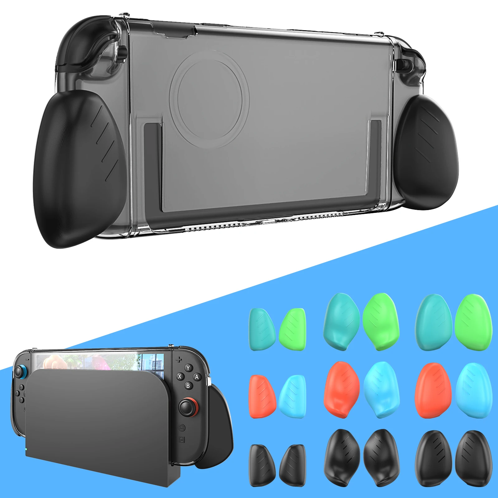 Case for Switch-2 console with grip, detachable transparent case, three pairs of replacement grips, for Switch-2 console