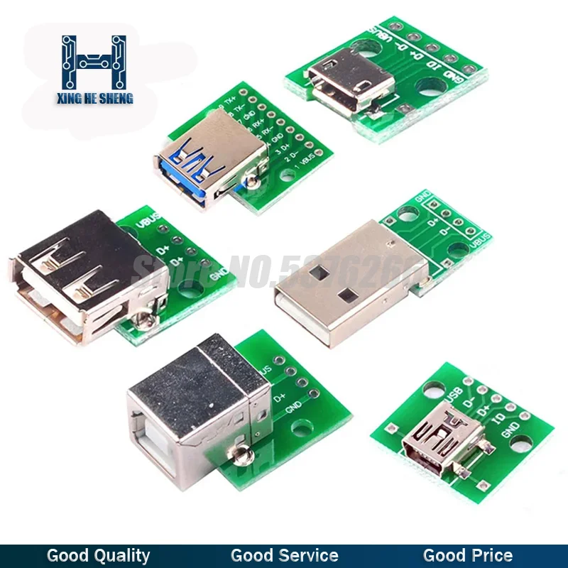 5pcs Mini Micro USB USB A Male USB 2.0 3.0 A Female USB B Connector Interface to 2.54mm DIP PCB Converter Adapter Breakout Board