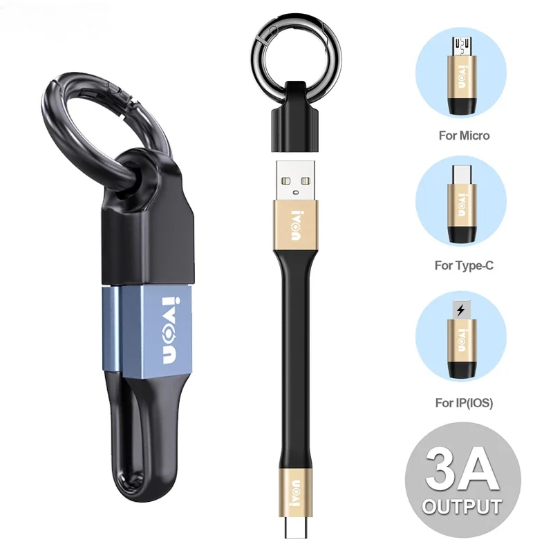 Portable Keychain USB Data Cable 2 in 1 3A Mini USB to Type-C LIGHTNING Micro USB Fast Charging Cable for iPhone Samsung Xiaomi  Read more