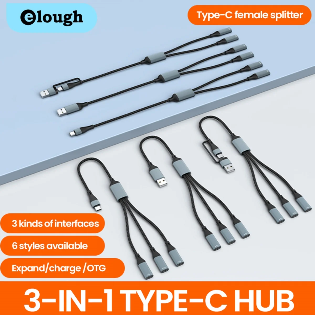 3 in 1 Type C HUB USB/USB C to 3Type C Splitter Connector OTG Data Transfer Read U Disk/Card For Laptop PC Mobile Phone  Read more
