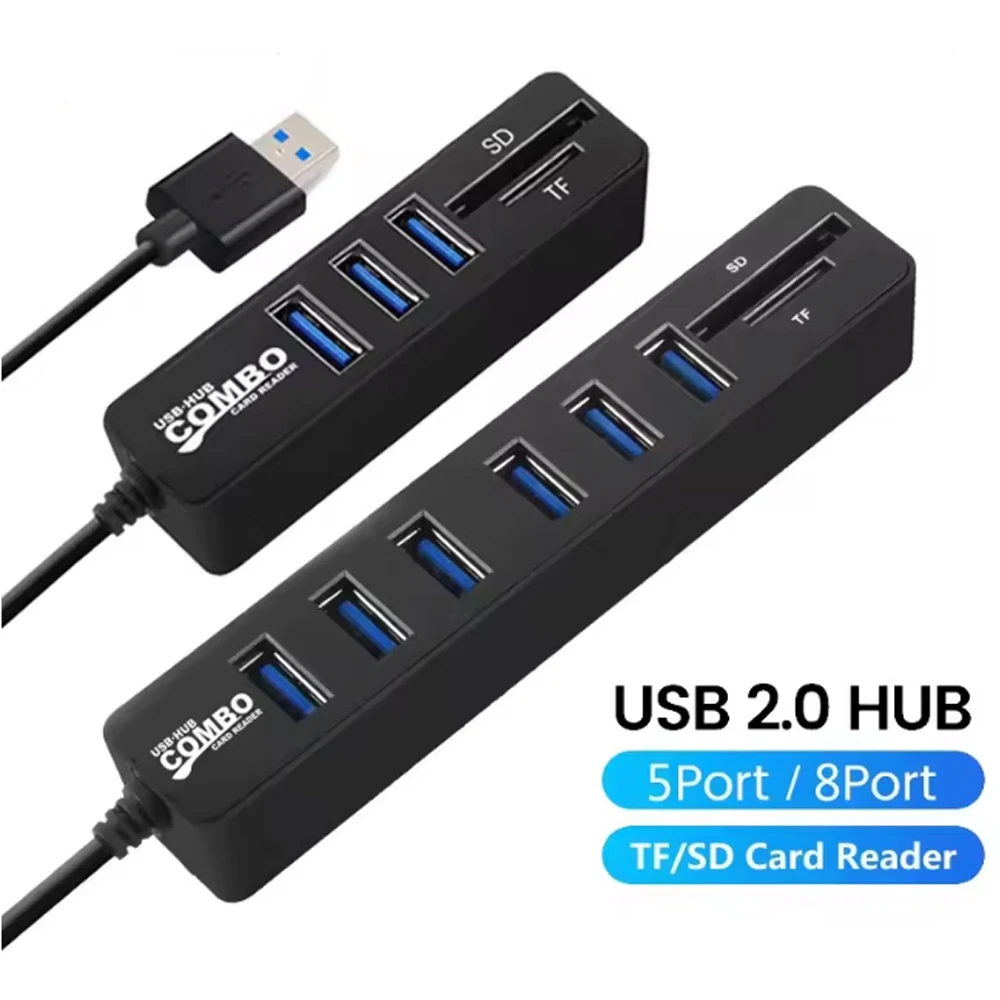 USB 2.0 Multi Ports High Speed 3 6 Port Hub USB Splitter Multiple Extender TF SD Card Reader Adapter Expander for Laptop PC